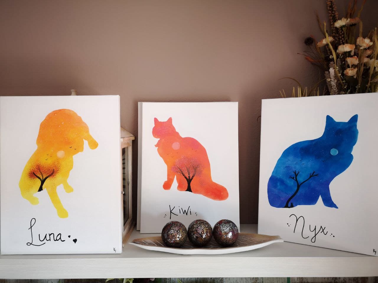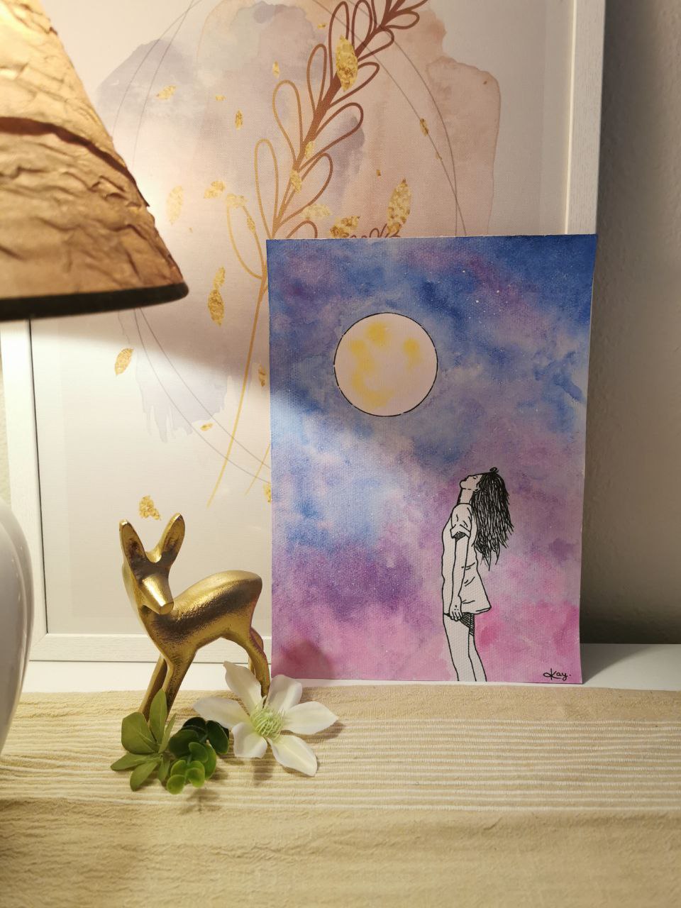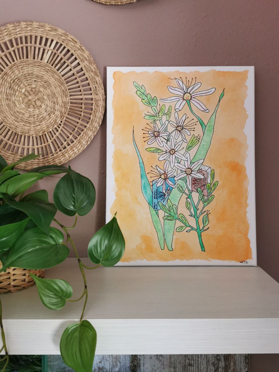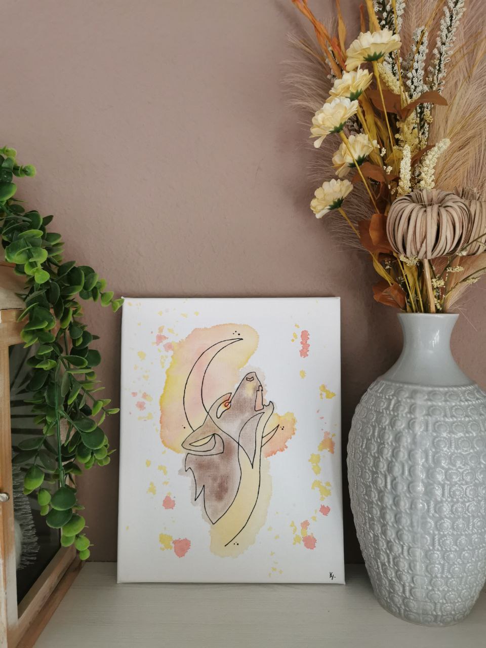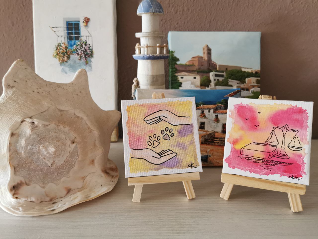 Podrás elegir los tonos, las medidas del lienzo o lámina, el tipo de técnica utilizada (acrílico o acuarela con línea fina negra), material (tronquito, lienzo normal, lienzo tipo tablilla, papel de acuarela) y el diseño. ¡Todo es hablarlo!