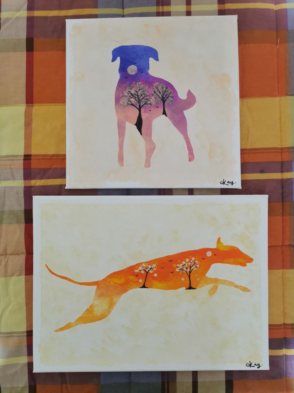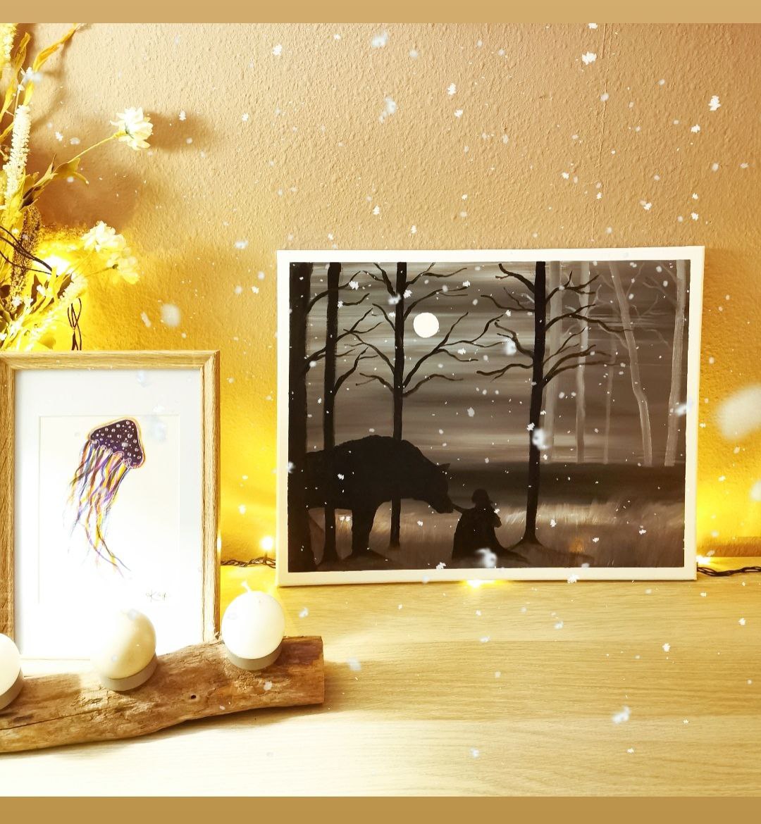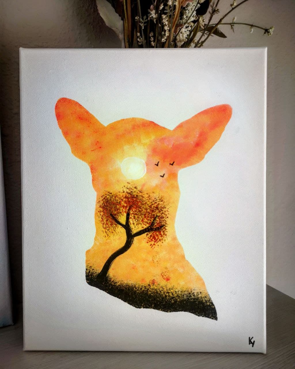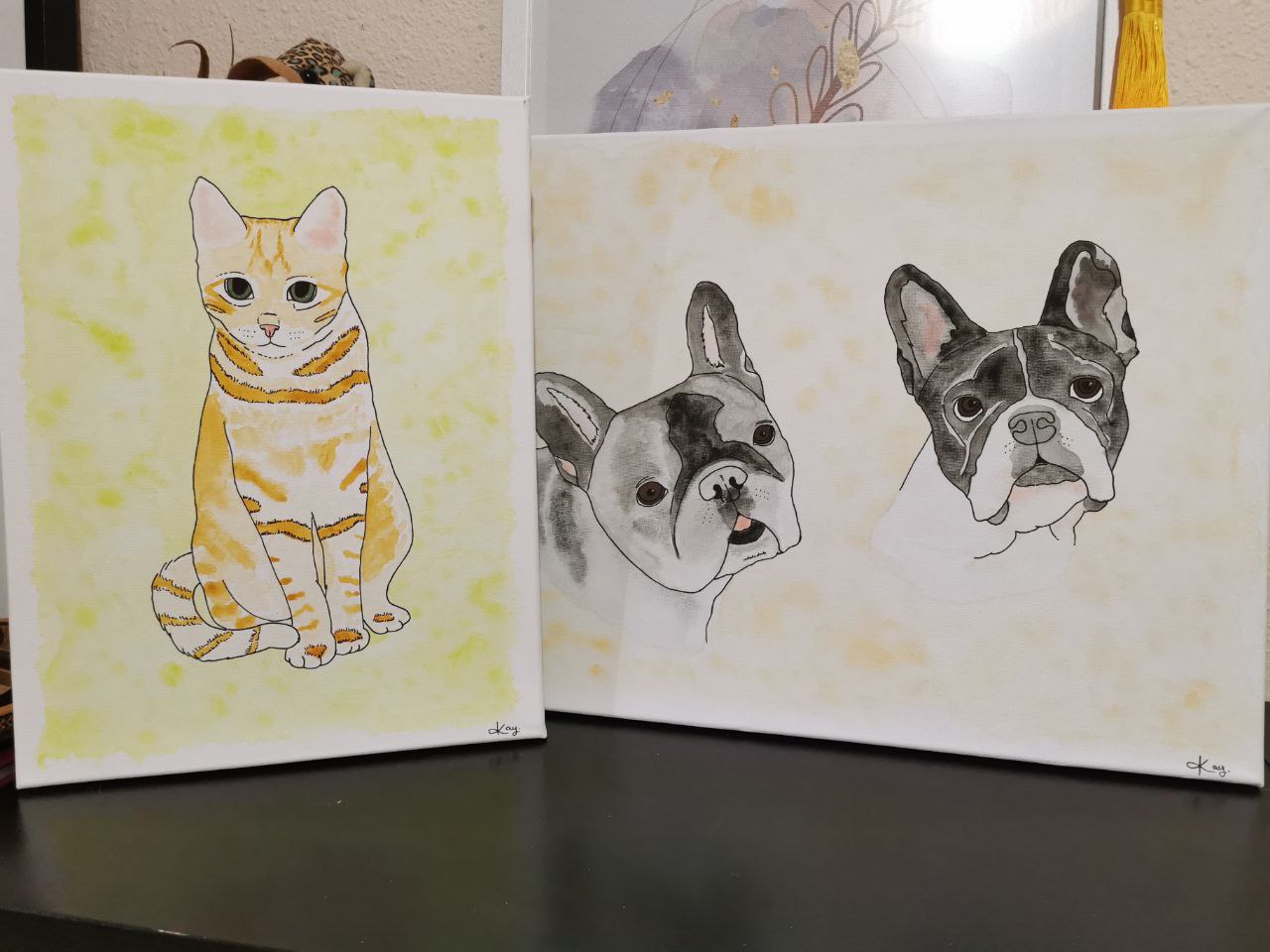 Podrás elegir los tonos, las medidas del lienzo o lámina, el tipo de técnica utilizada (acrílico o acuarela con línea fina negra), material (tronquito, lienzo normal, lienzo tipo tablilla, papel de acuarela) y el diseño. ¡Todo es hablarlo!