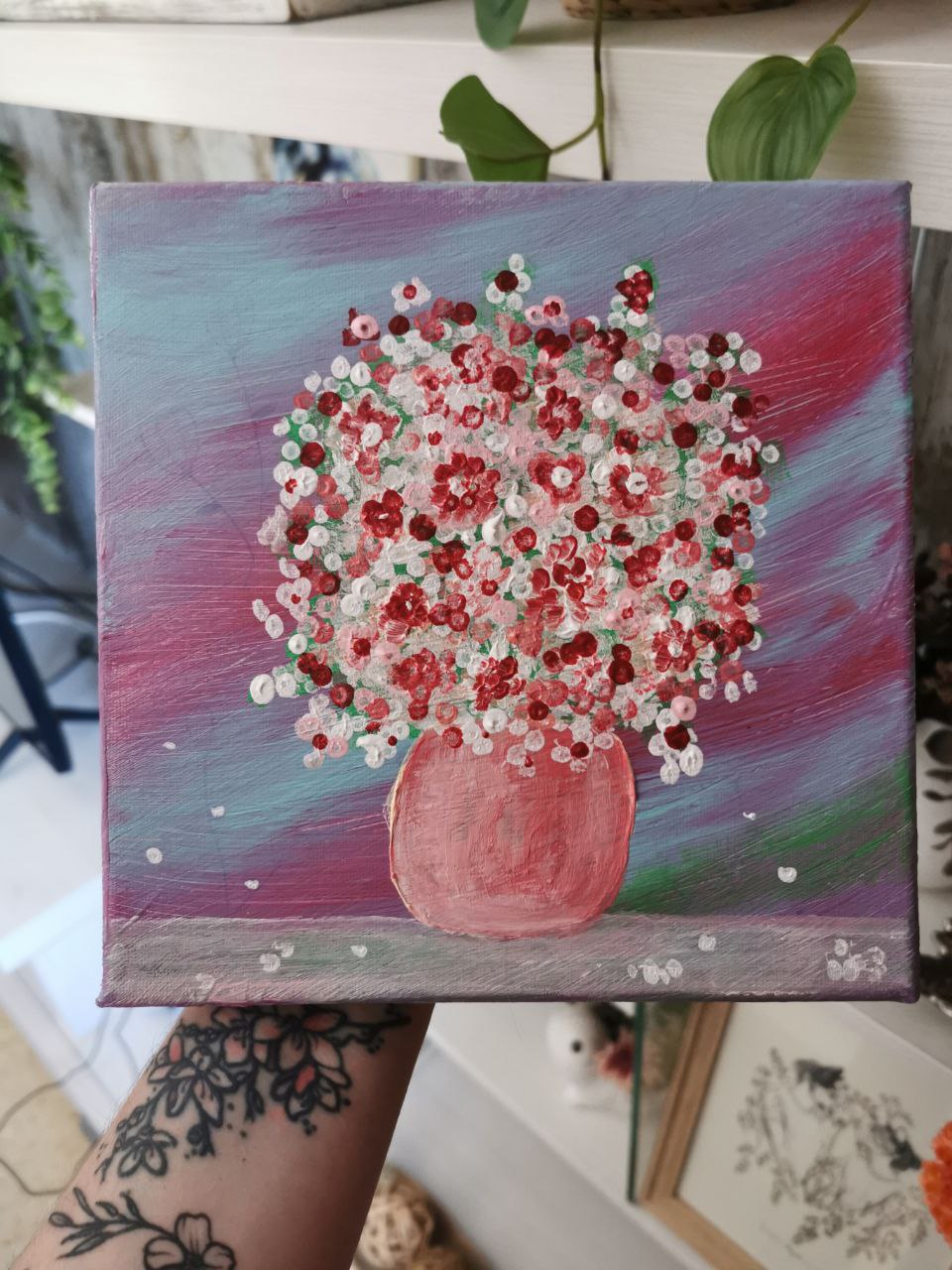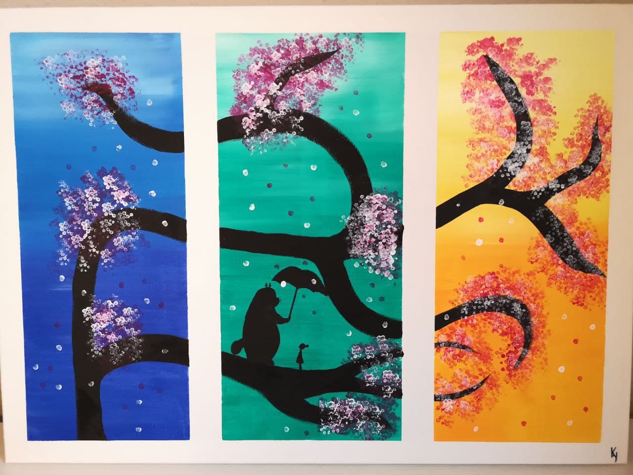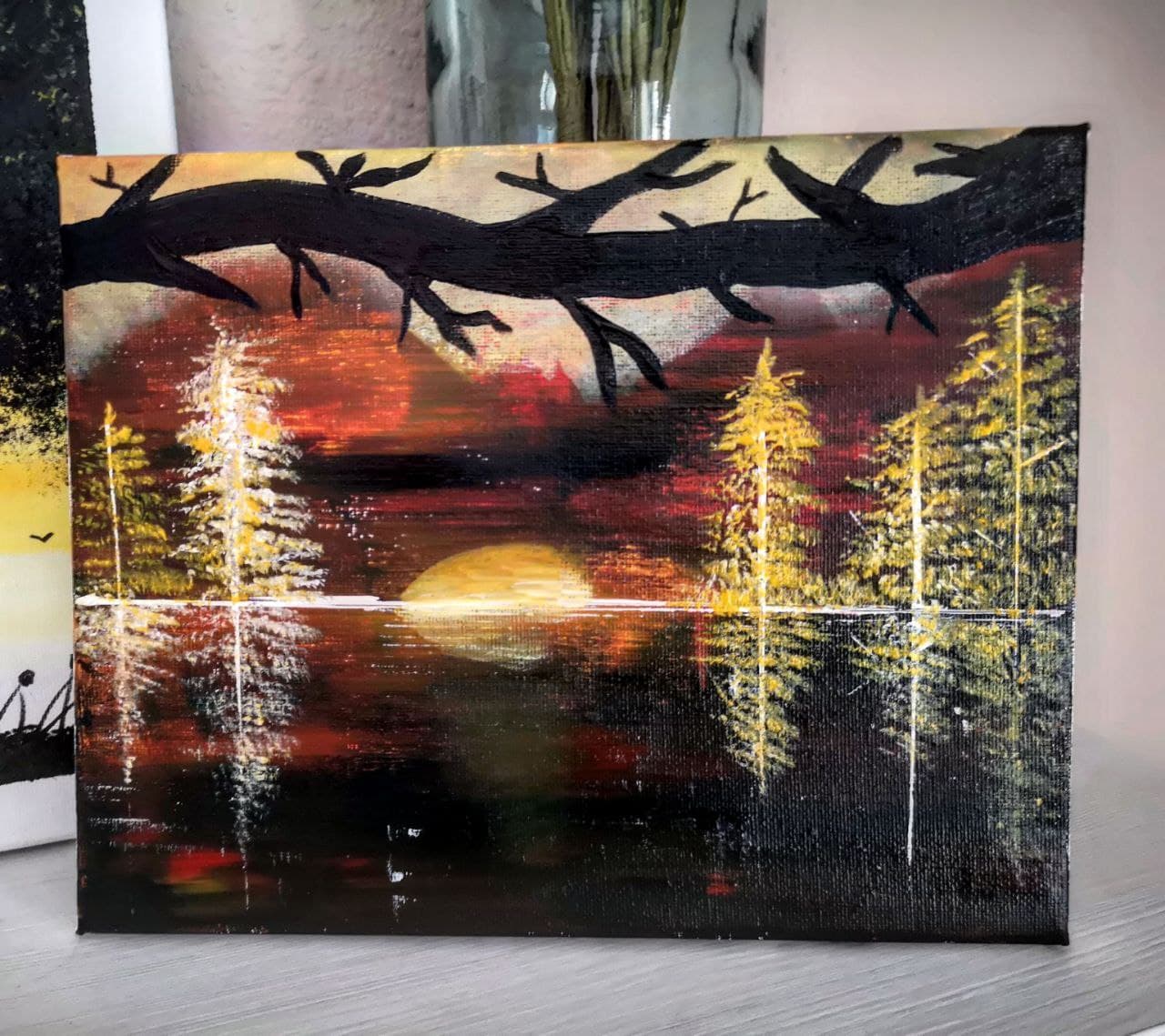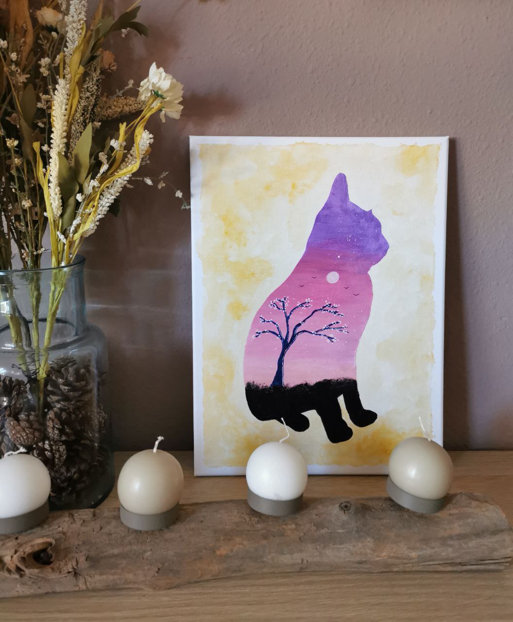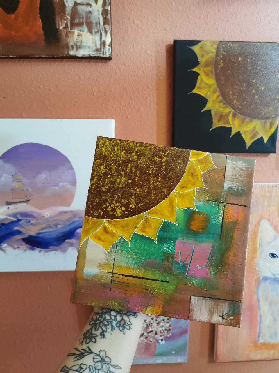 Podrás elegir los tonos, las medidas del lienzo o lámina, el tipo de técnica utilizada (acrílico o acuarela con línea fina negra), material (tronquito, lienzo normal, lienzo tipo tablilla, papel de acuarela) y el diseño. ¡Todo es hablarlo!